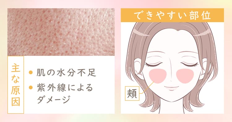 これは肌のターンオーバー(=肌が生まれ変わる周期)が乱れると、古い角質と皮脂が毛穴に溜まり「角栓」になるため。