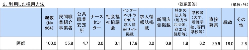 また、これは職場によっても違い、大学病院勤務の医師は転職回数が少ない傾向にあります。