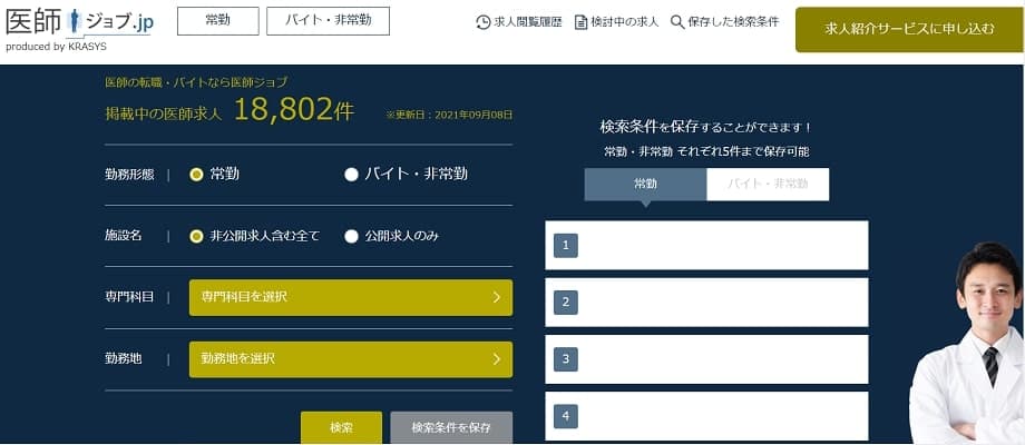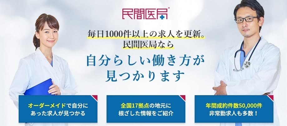 31万人以上の医師が登録している「m3.com」を運営しているエムスリーが運営しており、圧倒的な求人数と情報量を誇っています。