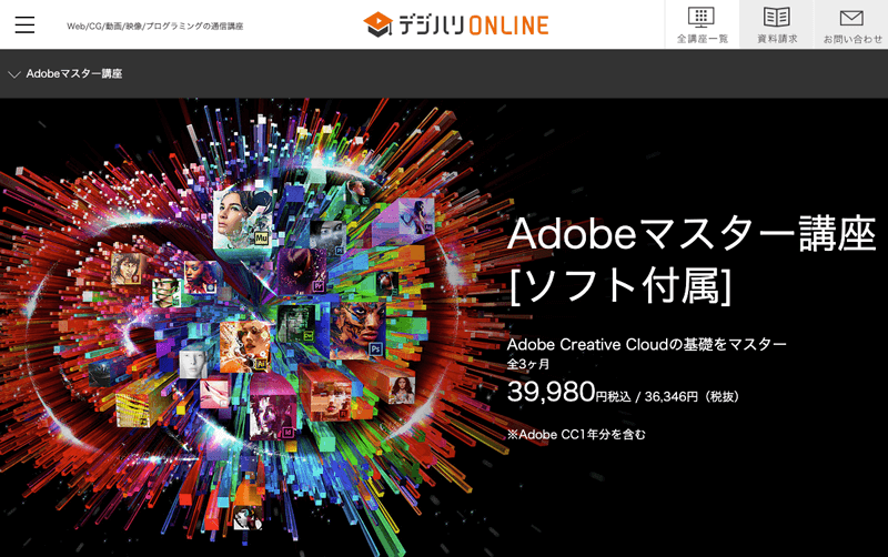 デジハリONLINEも、AdobeCC(Adobe Creative Cloud)のアカウントが1年使える権利も付いてきて、PhotoshopやIllustratorなどのアドビソフトの基本的な使い方が学習できるAdobeマスター講座が人気です!