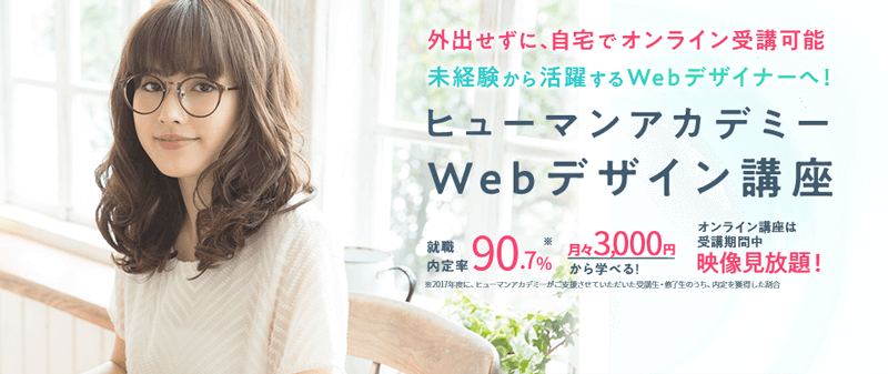 - 1位:ヒューマンアカデミーのWebデザイン講座