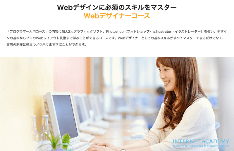 校舎が北海道から沖縄まで全国に23校あり、教育訓練給付金も各種割引も併用できる! - 2位:インターネットアカデミーのWebデザイナーコース