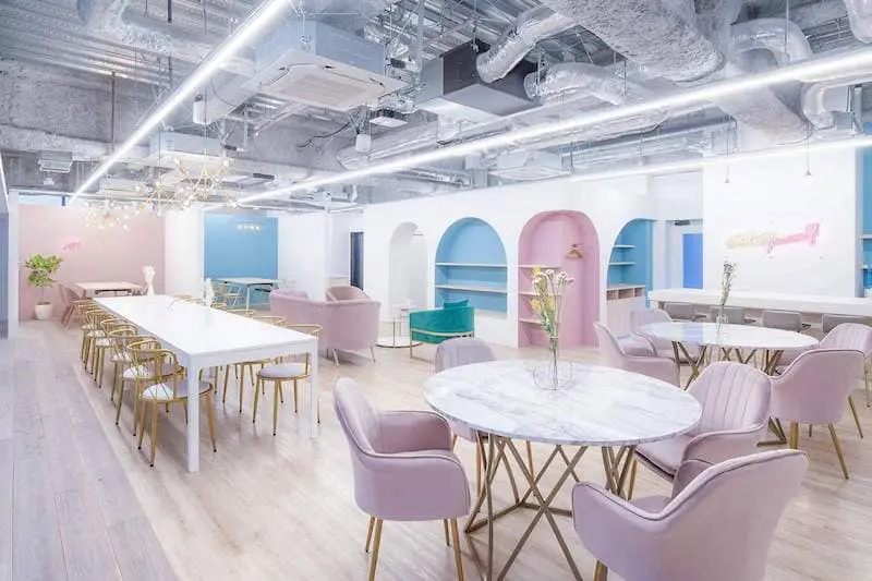 また、下の写真は大宮校の教室とフリースペースの写真です。