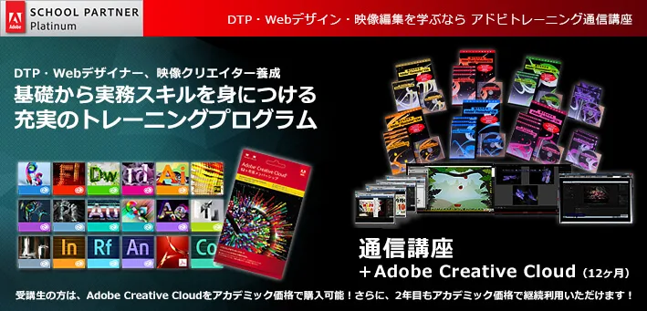 また、PhotoshopやIllustratorなどのAdobeのデザインソフト(ツール)が使えるAdobeCC(Adobe Creative Cloud)のアカウントが1年使える権利も付いてきます。
