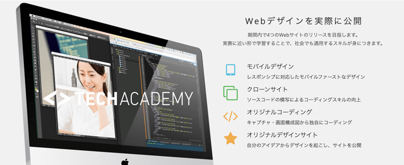 - 最大8名の少人数で、未経験OK。Macの使い方から学習できる