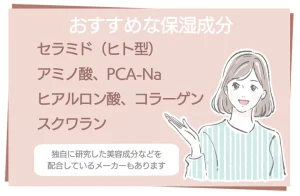 肝斑の大きな原因は女性ホルモンの乱れですが、そのほかに紫外線や乾燥・摩擦なども挙げられます。そのため、保湿力の高さは必要不可欠。特にクリームは最後に使用するからこそ高保湿なものを使って、うるおいを逃さないようにしたいものです。「セラミド・アミノ酸・ヒアルロン酸・コラーゲン・卵殻膜」など、保湿成分が豊富に含まれているかチェックしましょう。