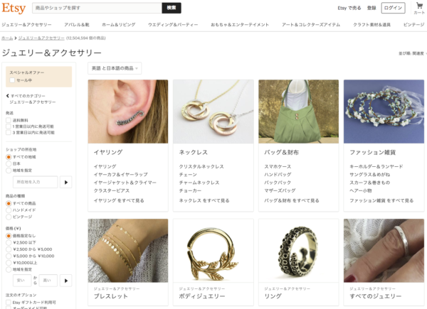 アクセサリーやファッションアイテム、ウェディングなどおしゃれな商品が多く日本のユーザーに特に人気があります。