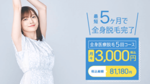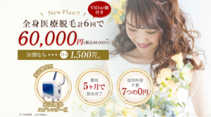 最近登場した『スピードプラン』では、VIO込みの全身脱毛5回が総額10万円以下で受けられます。