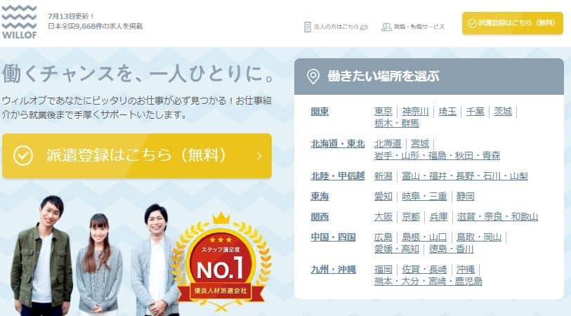 全国各地に拠点を持っているため、自宅や勤務先の近くで対面でサポートを受けることができ、都市部はもちろん、地方で軽作業の仕事を探したい方におすすめです。